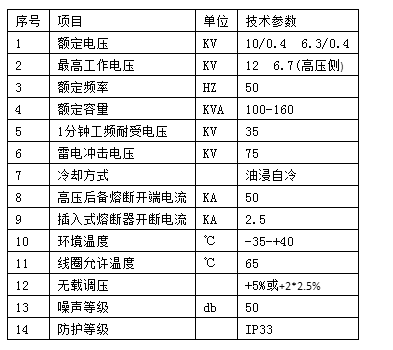 (3) 變壓器選用新型S11系列變壓器身。損耗低,過載能力好、抗短路能力強(qiáng)。所有緊固件經(jīng)過防松處理免吊蕊。詳細(xì)技術(shù)參數(shù)見變壓器出廠證書。